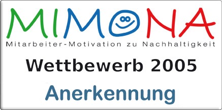 13.12.2005 - Anerkennung für web-basiertes Büro bei MIMONABei der Initiative Mitarbeitermotivation für Nachhaltigkeit MIMONA wurde heute für die leguan gmbh eine Anerkennung für das web-basierte Büro in Hannover bei der Umweltstiftung der IG BCE verliehen.