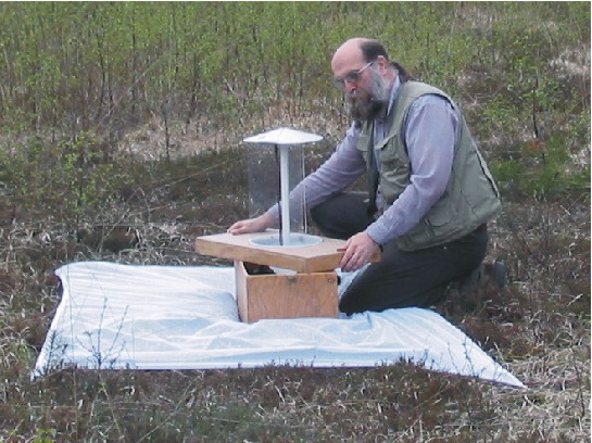 Der Aufbau ist nun beendet, man erkennt die sternförmig angeordneten Prallflächen aus Plexiglas. Viele Falter umkreisen die Lichtquelle und nähern sich dabei stetig an. Schließlich prallen sie gegen das Plexiglas und gleiten abwärts in den Trichter, der zur Fangkiste führt. Die Falle wird meist mit der Schmalseite in Windrichtung ausgerichtet, dies erhöht die Standfestigkeit.